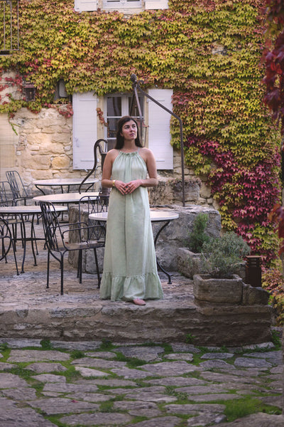 We proudly select only the finest high-quality OEKO-TEX® certified linen from Europe for our Luxe Provence linen dresses. Linen is our favorite fiber as it's naturally sustainable requiring very little water to grow, is naturally antibacterial, breathable and can thrive even in poor soil conditions. We believe in creating in harmony with nature with only the finest natural materials. Ethically Made in France.