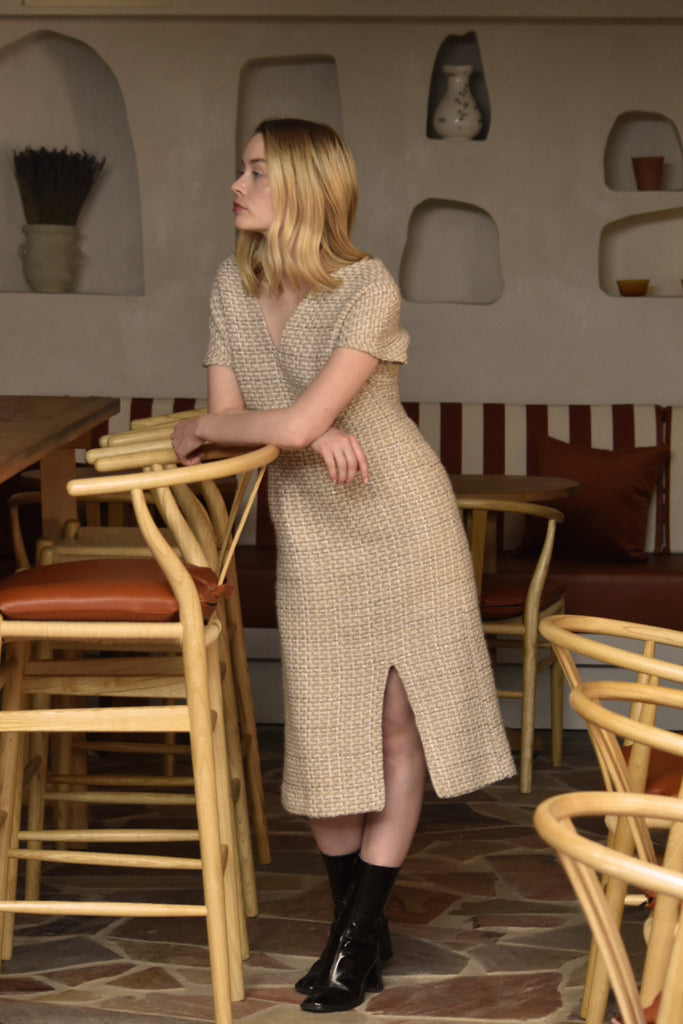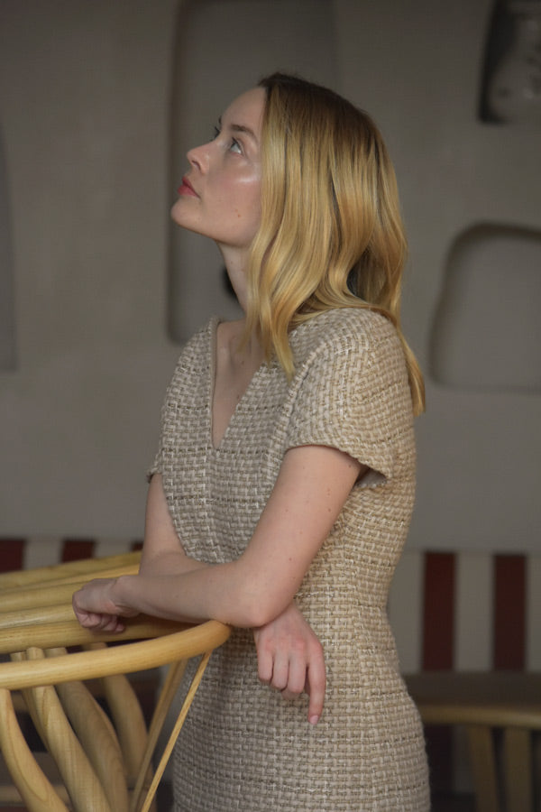 Our elegant Chloé Dress is a limited edition featuring an elegant sculpted neckline and chic cut created in this luxurious cashmere, wool blend tweed. This sophisticated and timeless dress can be worn year round and is perfect for a special night out.