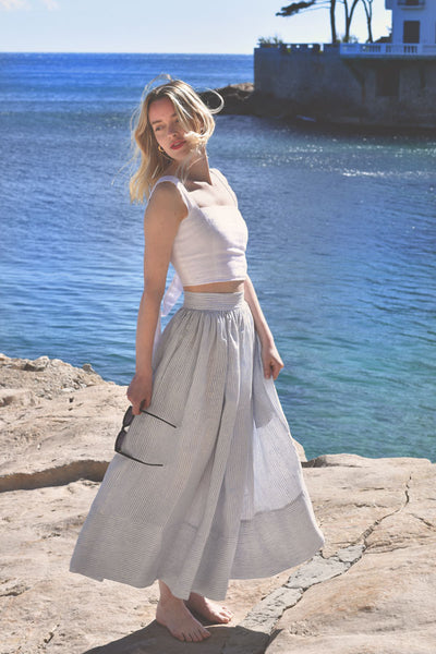 Discover our Luxe Provence® Collection of linen trousers and skirts featuring timeless classic cuts combined with modern, refined French details. All of our collection is proudly and ethically designed and Made in France with OEKO-Tex certified linen and locally sources silks. Designed to be worn barefoot by day, and paired with heels by night and inspired by the South of France lifestyle. We ship worldwide from France within 48 hours of all in-stock items.