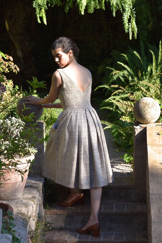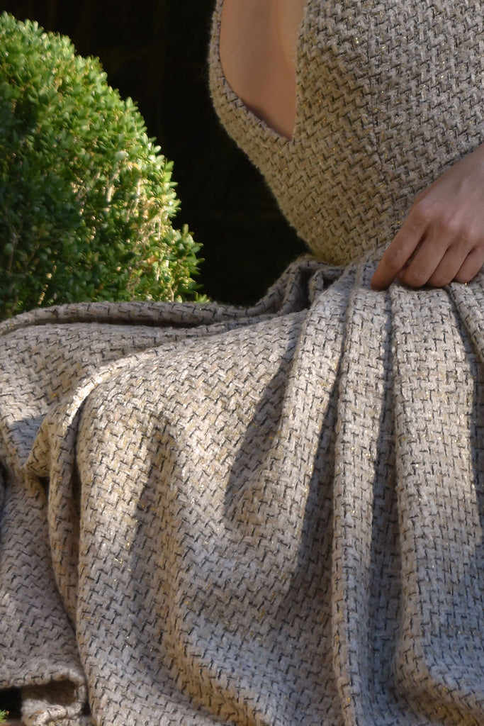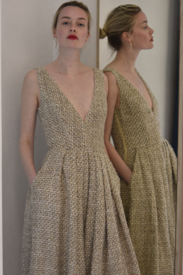 Discover our latest release, the Barbara Dress, a classic elegant dress designed to wear for years to come. Perfect for celebrating special occasion or milestone event, this dress is created in a super soft, Italian cashmere tweed blend. This deep V neck dress features romantic pleating and two pockets for your essentials.  Proudly made in our Provence atelier.